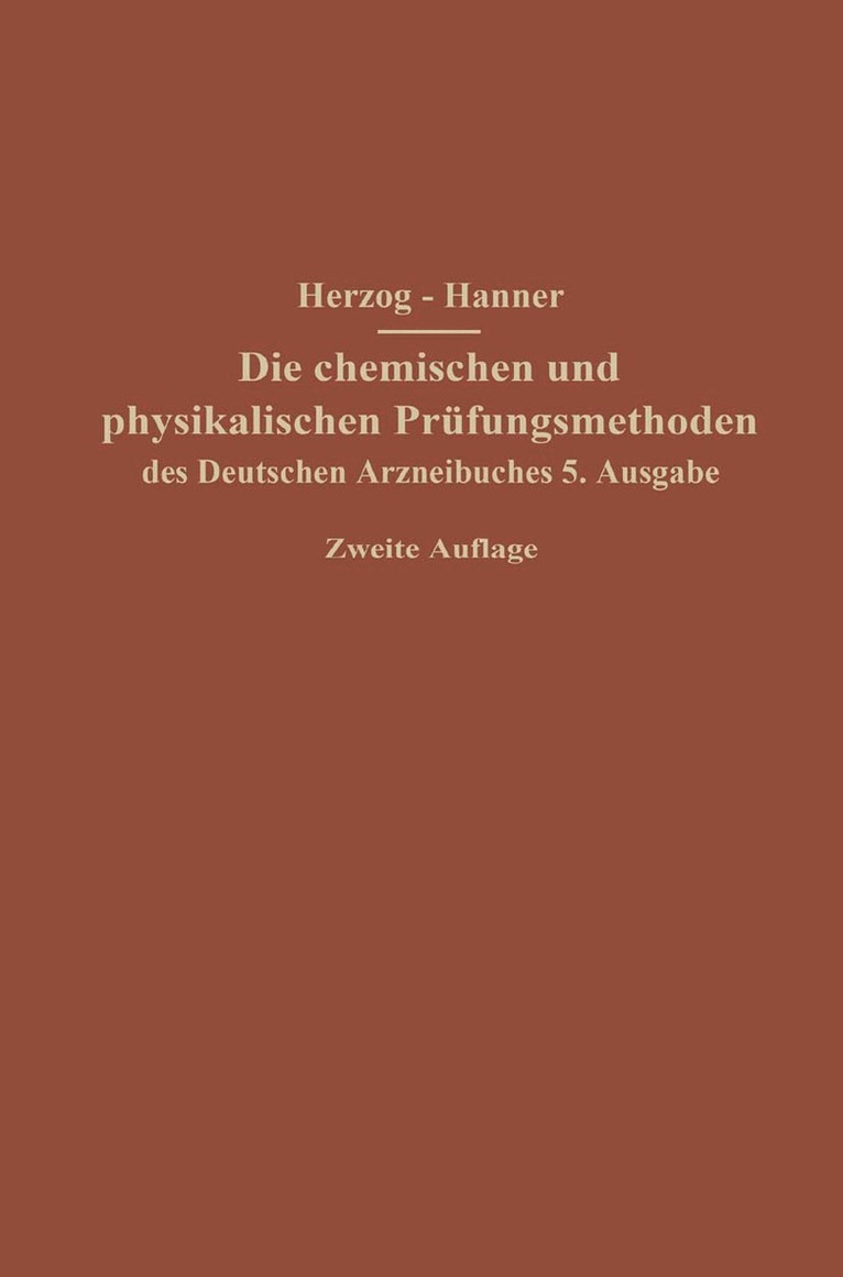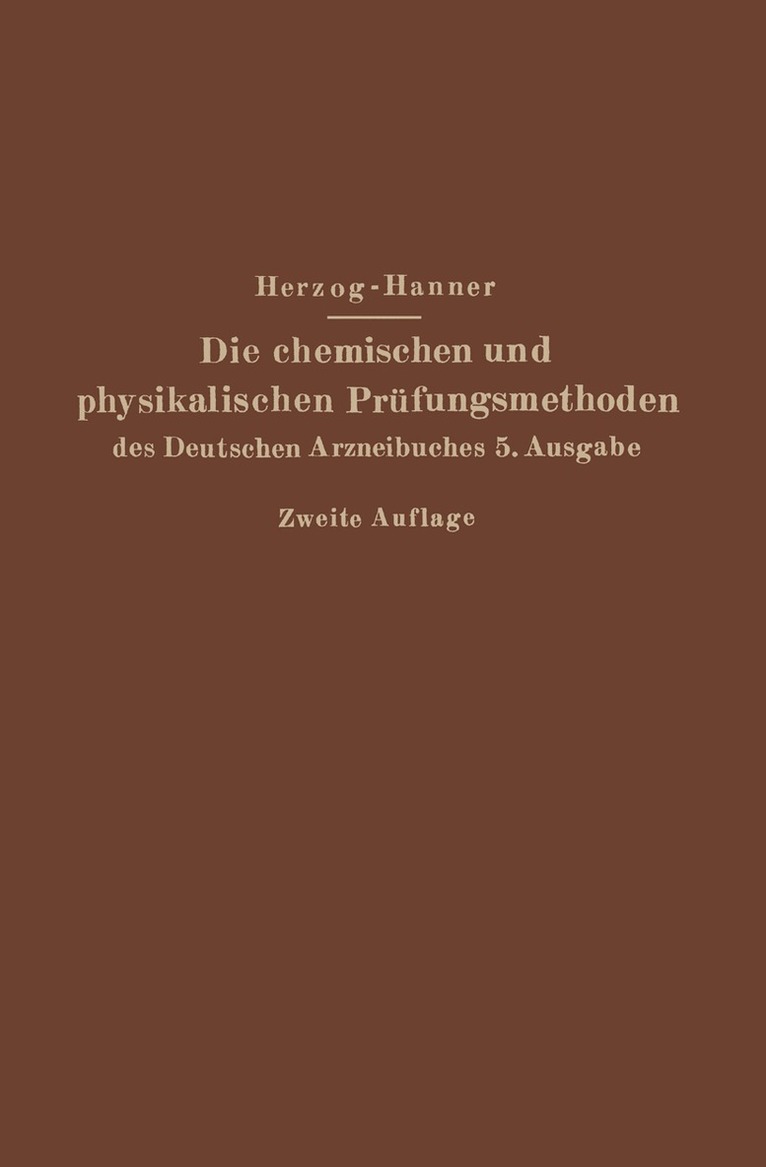 Die chemischen und physikalischen Prüfungsmethoden des Deutschen Arzneibuches 5. Ausgabe