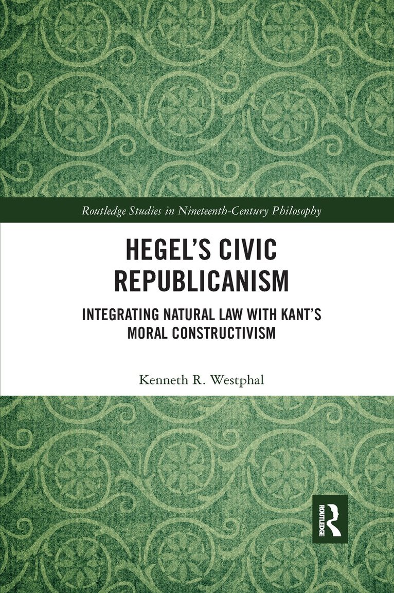 In this book, Westphal offers an original interpretation of Hegel’s moral philosophy. Building on his previous study of the role of natural law in Hume’s and Kant’s accounts of justice, Westphal argues that Hegel developed and justified a robust form of civic republicanism. Westphal identifies, for the first time, the proper genre to which Hegel’s Philosophical Outlines of Justice belongs and to which it so prodigiously contributes, which he calls Natural Law Constructivism, an approach developed by Hume, Rousseau, Kant, and Hegel. He brings to bear Hegel’s adoption and augmentation of Kant’s Critique of rational judgment and justification in all non-formal domains to his moral philosophy in his Outlines. Westphal argues that Hegel’s justification for the standards of political legitimacy successfully integrates Rousseau’s Independence Requirement into the role of public reason within a constitutional republic. In these regards, Hegel’s moral and political principles are progressive not only in principle, but also in practice. Hegel’s Civic Republicanism will be of interest to scholars of moral philosophy, social and political philosophy, philosophy of law, Hegel, eighteenth- and nineteenth-century philosophy.