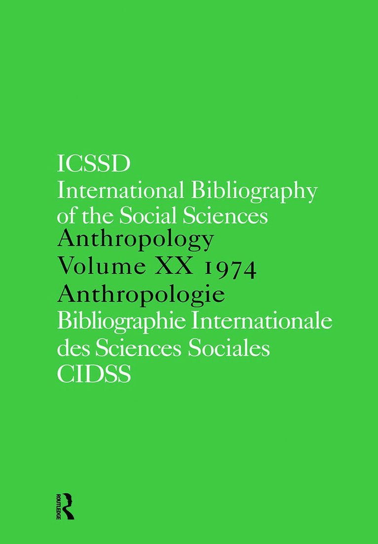 IBSS: Anthropology: 1974 Vol 20International Committee for Social Science Information and DocumentationInbunden7 620 kr