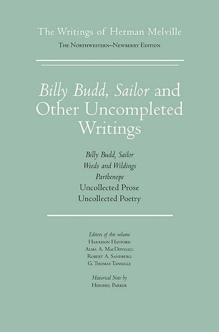 The gripping tale of a handsome and charismatic young sailor who runs afoul of his ship’s master-at-arms, is falsely accused of inciting a mutiny, and hung, Billy Budd, Sailor is often treated as a masterpiece, a canonical work. But that assessment is at least partly founded on the assumption that the story was complete and ready for publication when it was left among the manuscripts on Melville’s writing desk when he died in 1891. As Hershel Parker has pointed out, “It is a wonderfully teachable story—as long as it is not taught as a finished, complete, coherent, and totally interpretable work of art.” Furthering Melville’s goal of getting his last literary projects into print, even in their imperfect forms, this last volume in the edition presents the poetry and prose that Melville was unable to finish, his sometimes ineffectual, sometimes heroic purposes betrayed by death.These unfinished writings include, besides Billy Budd, two projected volumes containing poems and prose pieces, Weeds and Wildings and Parthenope; three prose pieces, “Rammon,” “Story of Daniel Orme,” and “Under the Rose”; and some three dozen poems of varying lengths. Some of these pieces were surely composed late in Melville’s career, during his retirement, but others may date to as early as the 1850s. Except for Billy Budd, many of these works have not been readily available in reliable texts, when available at all.This volume, the result of the editors’ meticulous study of the manuscripts, offers new reading texts, with significant corrections of words, phrases, and titles, the inclusion of heretofore unpublished lines of verse, and the return to their original locations of the two poems, “The Enviable Isles” and “Pausilippo,” that Melville had extracted for use in John Marr (1888) and Timoleon (1891). Hershel Parker’s Historical Note traces how these writings fit into the trajectory of Melville’s career, and the rest of the Editorial Appendix presents the scholarly evidence and decisions made in creating the reading texts. As a whole, the Northwestern-Newberry Edition of The Writings of Herman Melville, now complete in fifteen volumes, offers for the first time the total body of Melville’s extant writings in a critical text, faithful to his intentions.