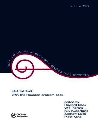 This volume contains the proceedings of the special session on Modern Methods in Continuum Theory presented at the 100th Annual Joint Mathematics Meetings held in Cincinnati, Ohio. It also features the Houston Problem Book which includes a recently updated set of 200 problems accumulated over several years at the University of Houston.;These proceedings and problems are aimed at pure and applied mathematicians, topologists, geometers, physicists and graduate-level students in these disciplines.