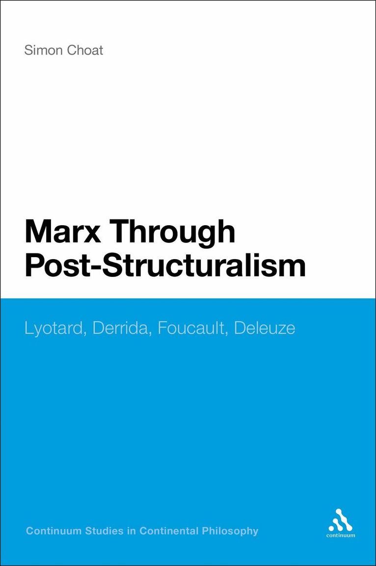 Marx Through Post-Structuralism presents a thorough critical examination of the readings of Marx given by four post-structuralist thinkers, all key figures in Continental philosophy: Jean-Franois Lyotard, Jacques Derrida, Michel Foucault, and Gilles Deleuze. Arguing that both Marx and the post-structuralists seek to produce a genuinely materialist philosophy, the author aims to develop a better understanding of both Marx and post-structuralism and in so doing to reflect on the possibilities and problems for materialist philosophy more broadly. Against the common assumption that post-structuralism begins with a rejection of Marx, Choat argues that Marx has been a key influence on post-structuralist thought and that each of the four thinkers examined affirms Marxs contemporary significance. By looking at how these thinkers have read Marx analysing their direct comments, unspoken uses, and implicit criticisms the book demonstrates that there is a distinct and original post-structuralist approach to Marx that allows us to read him in a new light.