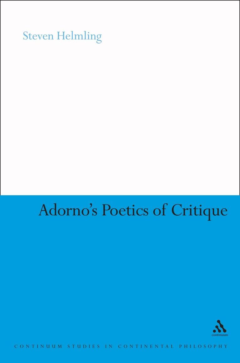This is an important monograph presenting a critique of the work of Theodor W. Adorno, a founding member of the Frankfurt School. "Adorno's Poetics of Critique" is a critical study of the Marxist culture-critic Theodor W. Adorno, a founding member of the Frankfurt school and widely regarded today as its most brilliant exponent. Steven Helmling is centrally concerned with Adorno's notoriously difficult writing, a feature most commentators acknowledge only to set it aside on the way to an expository account of 'what Adorno is saying'. By contrast, Adorno's complex writing is the central focus of this study, which includes detailed analysis of Adorno's most complex texts, in particular his most famous and complicated work, co-authored with Max Horkheimer, "Dialectic of Enlightenment".Helmling argues that Adorno's key motifs - dialectic, concept, negation, immanent critique, constellation - are prescriptions not merely for critical thinking, but also for critical writing. For Adorno the efficacy of critique is conditioned on how the writing of critique is written.Both in theory and in practice, Adorno urges a 'poetics of critique' that is every bit as critical as anything else in his 'critical theory.