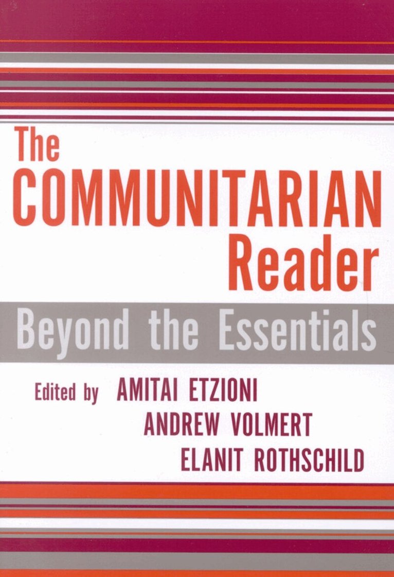 This outstanding new book shows why communitarian thought has had such a profound influence on contemporary American public policy, from strengthening our neighborhoods to fighting AIDS and educating our children. Edited by Amitai Etzioni, founder of the Communitarian Network and author of the best-selling books The Spirit of Community and The New Golden Rule, this comprehensive collection contains essays written by the nation's most respected thinkers. See why politicians as diverse as Vice President Al Gore and Jack Kemp view communitarian social philosophy as the most practical way of restoring America's communities and redeeming its political institutions.