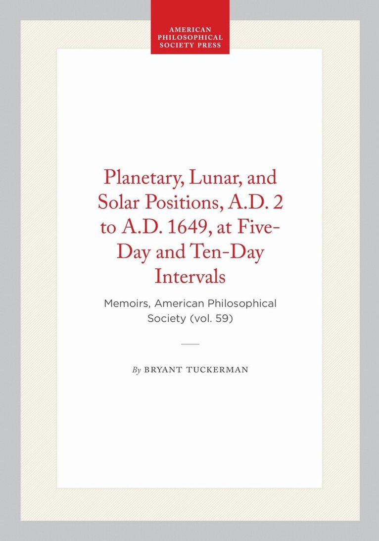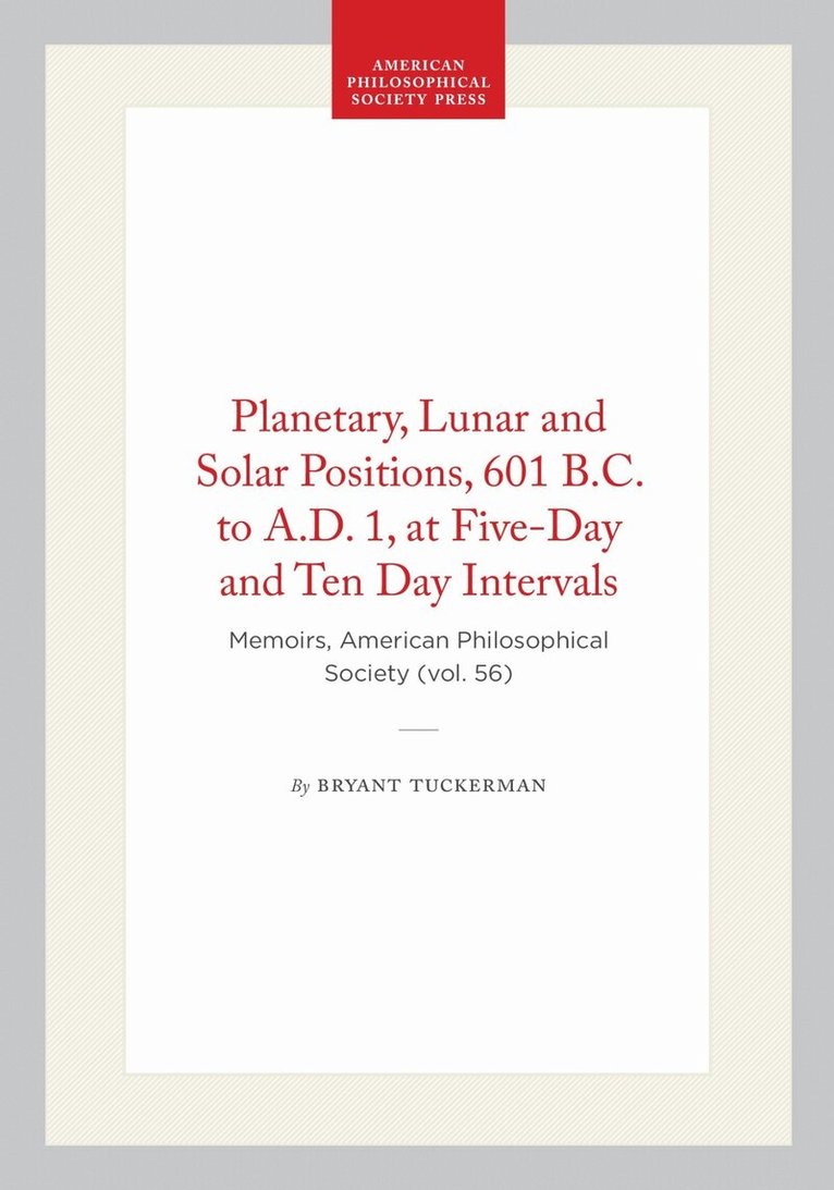 Del i serien Memoirs of the American Philosophical Society