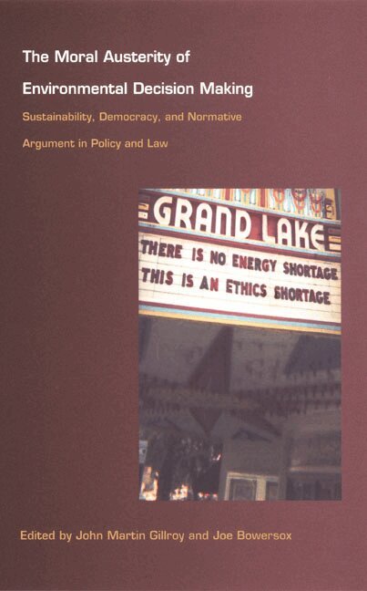 Most decision making in environmental policy today is based on the economic cost-benefit argument. Criticizing the shortcomings of the market paradigm, John Martin Gillroy proposes an alternative way to conceptualize and create environmental policy, one that allows for the protection of moral and ecological values in the face of economic demands. Drawing on Kantian definitions of who we are as citizens, how we act collectively, and what the proper role of the state is, Gillroy develops a philosophical justification for incorporating non-market values into public decision making. His new paradigm for justice toward nature integrates the intrinsic value of humanity and nature into the law. To test the feasibility of this new approach, Gillroy applies it to six cases: wilderness preservation, national wildlife refuges, not-in-my-backyard (NIMBY) siting dilemmas, comparative risk analysis, the Food and Drug Administration's risk regulation, and the National Environmental Policy Act. He also encourages others to adapt his framework to create alternative policy models from existing philosophies.This book offers new insights, models, and methods for policymakers and analysts and for scholars in philosophy, political theory, law, and environmental studies.