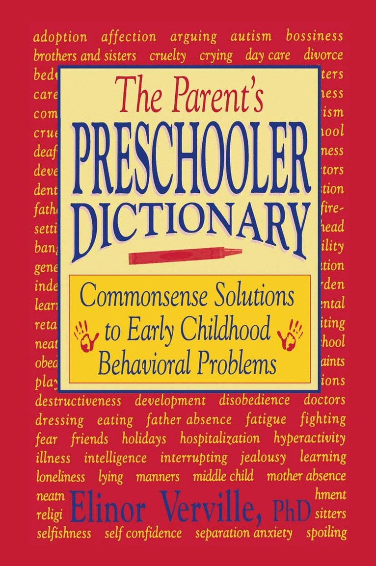 Does your preschooler disobey you, embarrass you, fight you? Does he or she refuse to eat or go to bed, break things, sleepwalk, or fear the dark excessively? Are you confused and uncertain about what attitude you should take towards such issues as spanking, sibling rivalry, favoritism, hospitalization, sex play, and overprotection? Dr. Elinor Verville, a clinical pediatric psychologist with many years of counseling experience, provides in The Parent's Preschooler Dictionary fast, practical, and effective solutions to the most common problems facing today's new and busy parents of preschoolers. Arranged in alphabetical order for rapid access, each concise article briefly illuminates the background of your child's troubling behavior or problem, explains why your preschooler acts as he or she does and advises you with tried-and-tested do's and don't's that you will be able to apply immediately. You can find just what you need to know about nearly any perplexing behavior your child exhibits and learn from Dr. Verville what must be done.The Parent's Preschooler Dictionary will help you gain knowledge and insight into your child and his or her problems, and build your confidence in dealing with trying moments and acquire the management skills you need to handle your child's behavioral problems effectively and well. As you become more confident, your child's anxiety will lessen and his or her emotional stability will increase. You will realize that you are becoming a competent parent, and your children will know that they can count on you to keep them safe, to teach them right from wrong, and to help them learn how to get along with others.