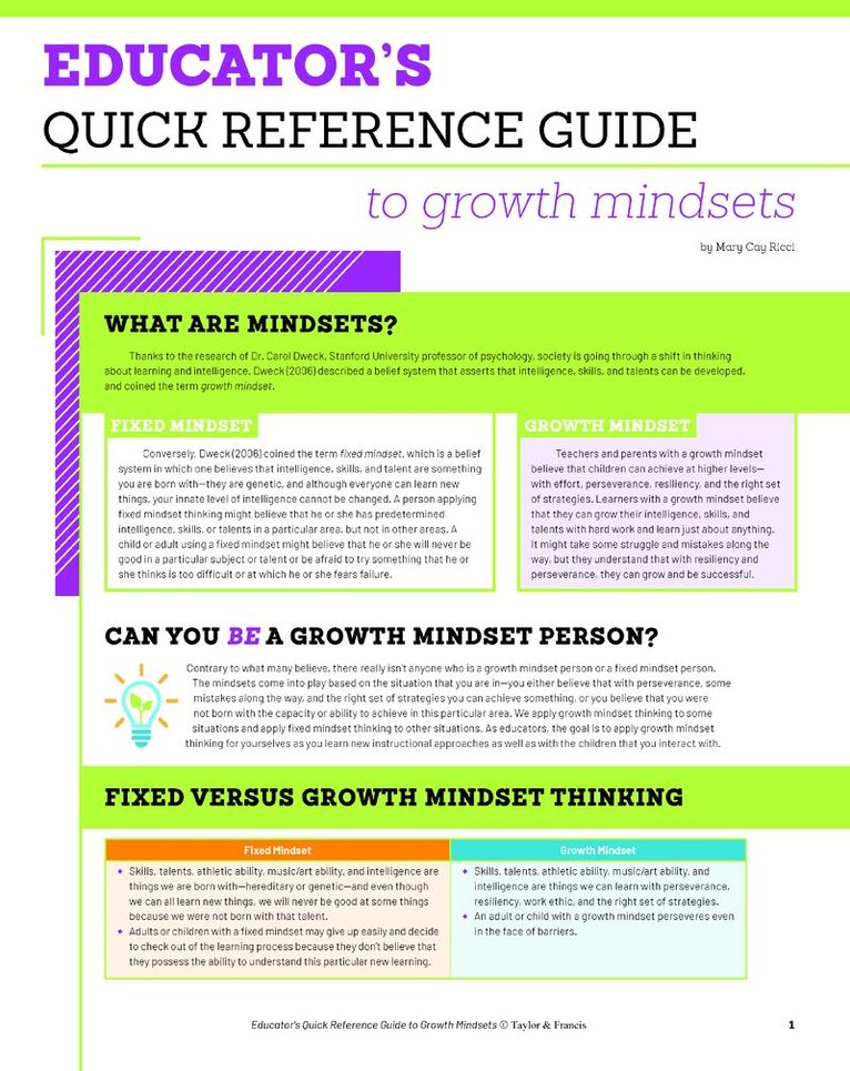 All parents want their children to be successful, but success is not just about giving your kids praise or setting them on the right direction. Research shows that success is often dependent on mindset. That’s where the updated edition of Mindsets for Parents comes in!Designed to provide a roadmap for developing a growth mindset home environment, this book’s conversational style and real-world examples make the popular mindsets topic approachable and engaging. It includes tools for informally assessing the mindsets of both parent and child, easy-to-understand updated brain research, brand new examples and prompts for self-reflection, as well as suggested strategies and resources for use with children of any age. Also included in this updated edition are book club questions, designed to get parent groups thinking and collaborating in order to make the most of these strategies.This book gives parents, guardians, coaches, caregivers, and anyone who works with children powerful knowledge and methods to help themselves and their children learn to embrace life’s challenges with a growth mindset and an eye toward increasing their effort and success!