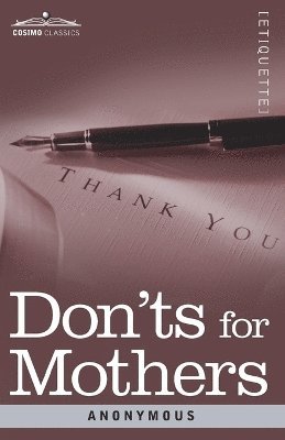 Following the success of Don'ts for Husbands and Don'ts for Wives a brand new old collection of advice: - From Birth to Weaning- The care of Young Children- Boyhood and Girlhood'Don't wash the baby in hot water, it would weaken and enervate the babe, and thus predispose him to disease. Luke warm rain water will be the best to wash him with.''Don't choose a wet nurse of a consumptive habit. Check if she or any of her family have laboured under "king's evil" ascertaining if there be any seams or swellings about her neck.''Don't rock an infant to sleep, it might cause him to fall into a feverish, disturbed slumber, but not into a refreshing, calm sleep. Besides, if you once take to that habit he will not go to sleep without it.''Don't add either gin or oil of peppermint to the babe's food. It is a murderous practice.''Don't purge an infant during teething or any other time. IF WE LOCK UP THE BOWELS, WE CONFINE THE ENEMY, AND THUS PRODUCE MISCHIEF.'