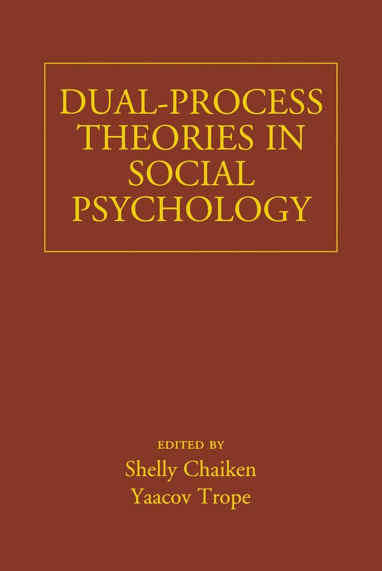 - I. The Basics1. Two of What?: A Conceptual Analysis of Dual-Process Theories, Bertram Gawronski, Jeffrey W. Sherman, and Yaacov Trope2. Examining the Mapping Problem in Dual-Process Models, Agnes Moors3. Conscious and Unconscious: Toward an Integrative Understanding of Human Mental Life and Action, Roy F. Baumeister and John A. Bargh4. What Is Control?: A Conceptual Analysis, Kentaro Fujita, Yaacov Trope, William A. Cunningham, and Nira LibermanII. Dual-Systems Models5. Two Systems of Reasoning: An Update, Steven Sloman6. Rationality, Intelligence, and the Defining Features of Type 1 and Type 2 Processing, Keith A. Stanovich, Richard F. West, and Maggie E. Toplak7. The Reflective-Impulsive Model, Fritz Strack and Roland DeutschIII. Measurement and Formal Modeling8. Dual-Process Theory from a Process Dissociation Perspective, B. Keith Payne and C. Daryl Cameron9. Process Models Require Process Measures, Jeffrey W. Sherman, Regina Krieglmeyer, and Jimmy Calanchini10. Random-Walk and Diffusion Models, Karl Christoph KlauerIV. Attitudes and Evaluation11. The MODE Model: Attitude-Behavior Processes as a Function of Motivation and Opportunity, Russell H. Fazio and Michael A. Olson12. The Elaboration Likelihood and Metacognitive Models of Attitudes: Implications for Prejudice, the Self, and Beyond, Richard E. Petty and Pablo Briñol13. The Associative-Propositional Evaluation Model: Operating Principles and Operating Conditions of Evaluation, Bertram Gawronski and Galen V. Bodenhausen14. The Systems of Evaluation Model: A Dual-Systems Approach to Attitudes, Allen R. McConnell and Robert J. RydellV. Social Perception15. Controlled Processing and Automatic Processing in the Formation of Spontaneous Trait Inferences, Randy J. McCarthy and John T. Skowronski16. The Dynamic Interactive Model of Person Construal: Coordinating Sensory and Social Processes, Jonathan B. Freeman and Nalini Ambady17. Person Perception: Integrating Category-Level and Individual-Level Information in Face Construal, Kimberly A. Quinn and C. Neil Macrae18. Dual-Process Models of Trait Judgments of Self and Other: An Overview and Critique, Stanley B. Klein19. Automaticity, Control, and the Social Brain, Robert P. Spunt and Matthew D. LiebermanVI. Thinking and Reasoning20. The Human Unconscious: A Functional Perspective, Ran R. Hassin and Asael Y. Sklar21. Metacognitive Processes and Subjective Experiences, Rainer Greifeneder and Norbert Schwarz22. Same or Different?: How Similarity versus Dissimilarity Focus Shapes Social Information Processing, Thomas Mussweiler23. Visual versus Verbal Thinking and Dual-Process Moral Cognition, Elinor Amit, Sara Gottlieb, and Joshua D. Greene24. Prolonged Thought: Proposing Type 3 Processing, Ap Dijksterhuis, Madelijn Strick, Maarten W. Bos, and Loran F. NordgrenVII. Habits, Goals, and Motivation25. Habits in Dual-Process Models, Wendy Wood, Jennifer S. Labrecque, Pei-Ying Lin, and Dennis Rünger26. Conscious and Unconscious Goal Pursuit: Similar Functions, Different Processes?, Ruud Custers and Henk Aarts27. The Implicit Volition Model: The Unconscious Nature of Goal Pursuit, Gordon B. Moskowitz28. Promotion and Prevention: How 0 Can Create Dual Motivational Forces, E. Tory HigginsVIII. Self-Regulation and Control29. Beyond Control versus Automaticity: Psychological Processes Driving Postsuppressional Rebound, Jens Förster and Nira Liberman30. The Explicit and Implicit Ways of Overcoming Temptation, Ayelet Fishbach and Luxi Shen31. Breaking the Prejudice Habit: Automaticity and Control in the Context of a Long-Term Goal, Patrick S. Forscher and Patricia G. Devine32. Emotion Generation and Emotion Regulation: Moving beyond Traditional Dual-Process Accounts, Gal Sheppes and James J. GrossIX. Criticism and Alternatives33. The Limits of Automaticity, Klaus Fiedler and Mandy Hütter34. The Unimodel Unfolding, Arie W. Kruglanski, Kristen M. Klein, Antonio Pierro, and Lucia Mannetti35. Why a Propositional Single-Process Model of Associative Learning Deserves to Be Defended, Jan De Houwer36. How Many Processes to Ground a Concept?, Gün R. Semin, Margarida V. Garrido, and Ana Rita Farias37. Dual Experiences, Multiple Processes: Looking Beyond Dualities for Mechanisms of the Mind, David M. Amodio38. Rethinking Duality: Criticisms and Ways Forward, Melissa J. Ferguson, Thomas C. Mann, and Michael T. Wojnowicz