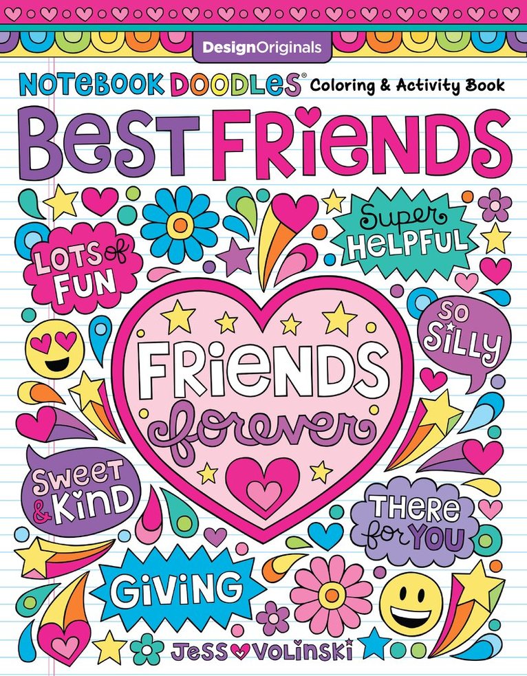 Welcome to a world of love and hugs with Notebook Doodles LOVE! This heartwarming coloring book for ‘tweens is filled with 32 touching designs and sentiments from talented artist Jess Volinski, from X’s and O’s to meaningful messages. Also included are instructions on basic coloring techniques, fully colored examples, and motivational quotes to go with every design. Watercolors, colored pencils, markers, crayons, and gel pens will all look stunning on archival-grade, acid-free, 200-year paper. Each one-sided page is perforated, so when kids are finished coloring, it can easily be removed to hang up or give as a gift.