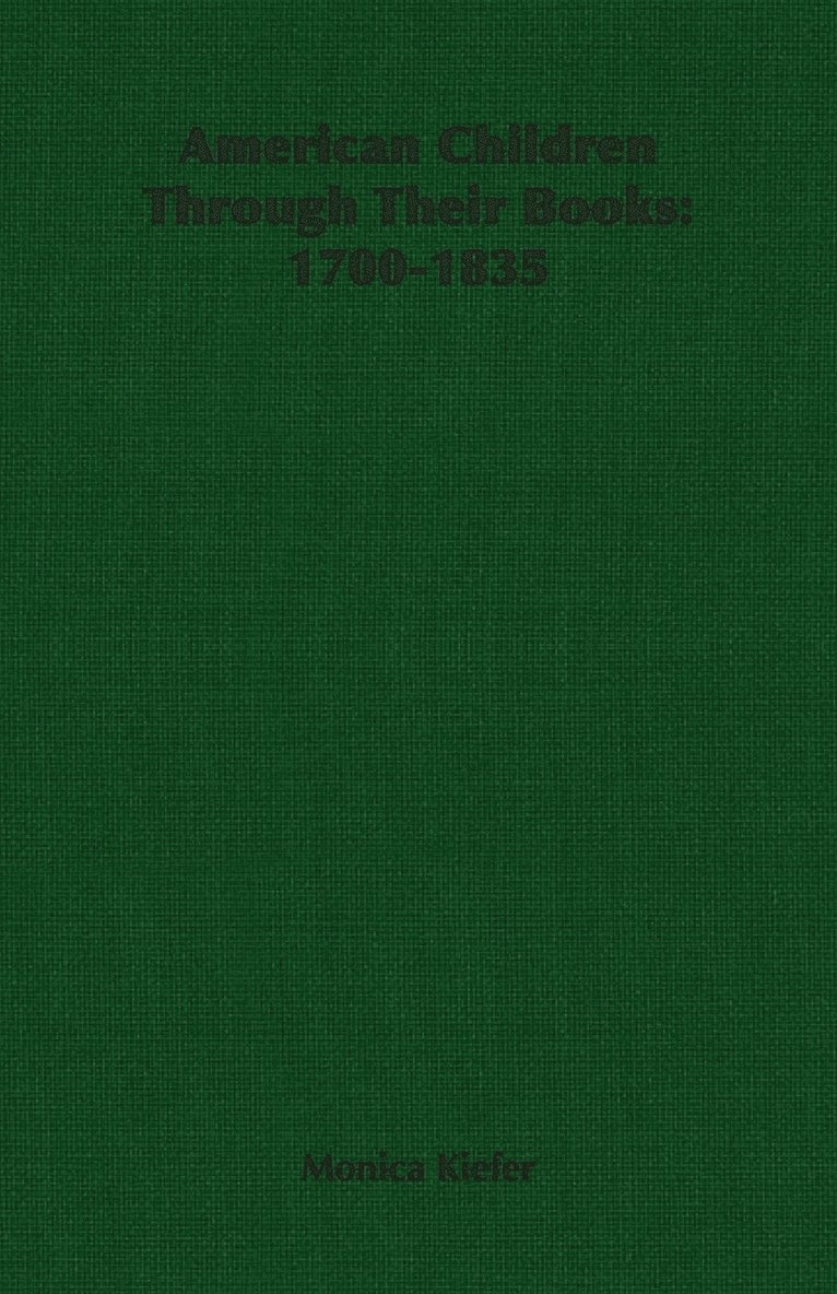 The status of American children at the beginning of the eighteenth century was so insignificant that writers apologized for wasting their talents on the subject and physicians seldom condescended to prescribe for them. the Changing attitude toward the child since then, however, can be classed as one of the great revolutions of history.In this volume Monica Kiefer traces the development of various phases of child life, including religion, manners and morals, education, health and recreation, through an analysis of children's books from 1700 to 1835, which year marked the beginning of a trend fostering a view of life more benign and worldly than the previous era of extreme pietism.