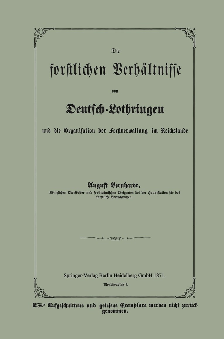 Die forstlichen Verhältnisse von Deutsch-Lothringen und die Organisation der Forstverwaltung im ReichslandeAugust BernhardtHäftad734 kr