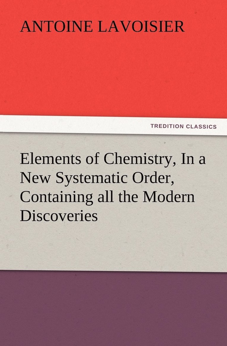 Elements of Chemistry; In a New Systematic Order, Containing all the Modern DiscoveriesAntoine LavoisierHäftad283 kr