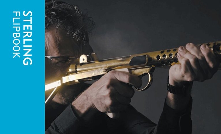 The sequence here shows Royal Armouries’ Keeper of Firearms Jonathan Ferguson firing a Sten MK II centrefire automatic submachine gun. Sequence shot at the National Firearms Centre in Leeds.