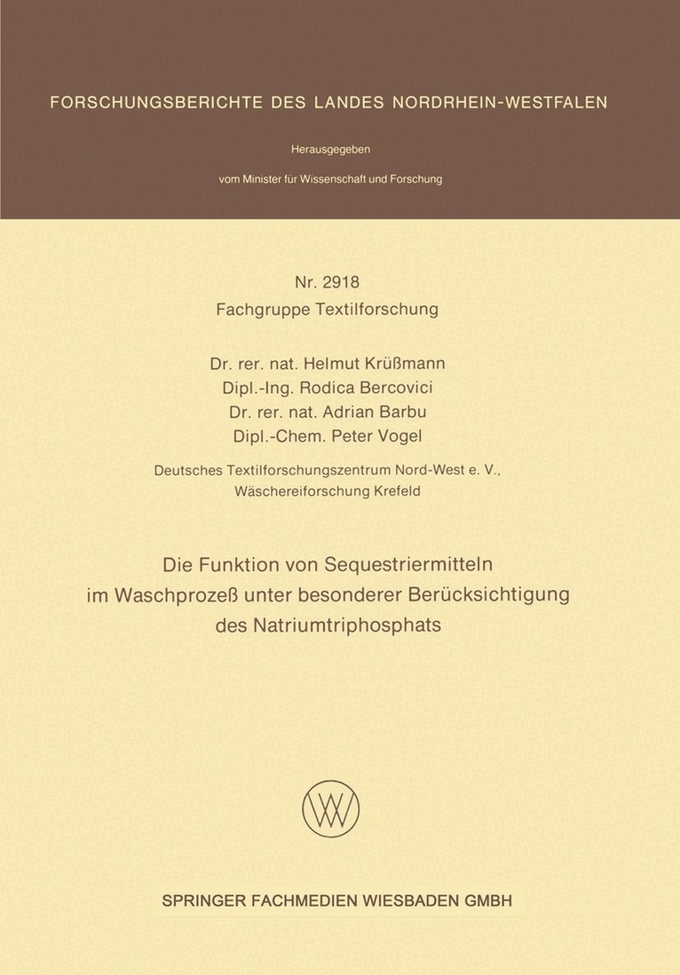 Die Funktion von Sequestriermitteln im Waschprozeß unter besonderer Berücksichtigung des NatriumtriphosphatsHelmut Krüßmann, Rodica Bercovici, Adrian Barbu, Peter VogelHäftad550 kr