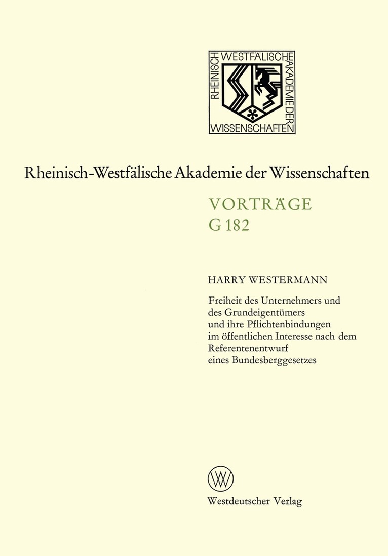 Del 182Freiheit des Unternehmers und des Grundeigentümers und ihre Pflichtenbindungen im öffentlichen Interesse nach dem Referentenentwurf eines BundesberggesetzesHarry WestermannHäftad505 kr