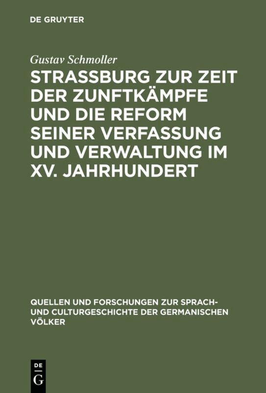 Strassburg zur Zeit der Zunftkämpfe und die Reform seiner Verfassung und Verwaltung im XV. JahrhundertGustav SchmollerInbunden1 557 kr