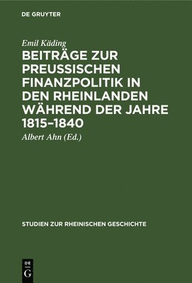 Beiträge Zur Preussischen Finanzpolitik in Den Rheinlanden Während Der Jahre 1815-1840