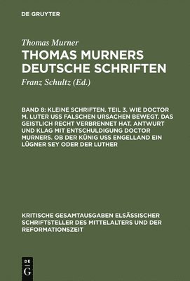 Kleine Schriften. Teil 3. Wie Doctor M. Luter Uß Falschen Ursachen Bewegt. Das Geistlich Recht Verbrennet Hat. Antwurt Und Klag Mit Entschuldigung Doctor Murners. OB Der Künig Uß Engelland Ein Lügner Sey Oder Der LutherThomas Murner, Wolfgang Pfeiffer-BelliInbunden2 402 kr