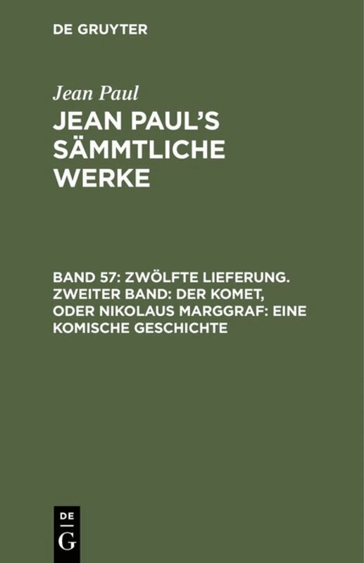 Zwölfte Lieferung. Zweiter Band: Der Komet, oder Nikolaus Marggraf. Eine komische Geschichte