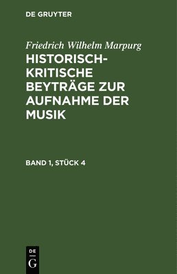 Friedrich Wilhelm Marpurg: Historisch-Kritische Beyträge Zur Aufnahme Der Musik. Band 1, Stück 4Friedrich Wilhelm MarpurgInbunden1 757 kr