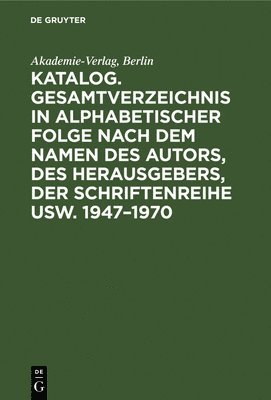 Katalog. Gesamtverzeichnis in Alphabetischer Folge Nach Dem Namen Des Autors, Des Herausgebers, Der Schriftenreihe Usw. 1947-1970Akademie-Verlag BerlinInbunden2 199 kr