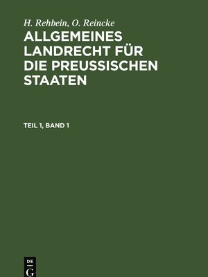 H. Rehbein; O. Reincke: Allgemeines Landrecht Für Die Preußischen Staaten. Teil 1, Band 1H Rehbein, O ReinckeInbunden1 588 kr
