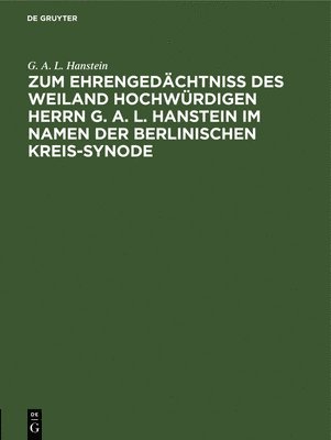 Zum Ehrengedächtniß Des Weiland Hochwürdigen Herrn G. A. L. Hanstein Im Namen Der Berlinischen Kreis-Synode