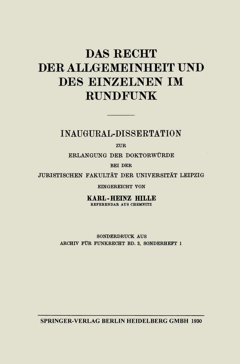 Das Recht der Allgemeinheit und des Einzelnen im Rundfunk