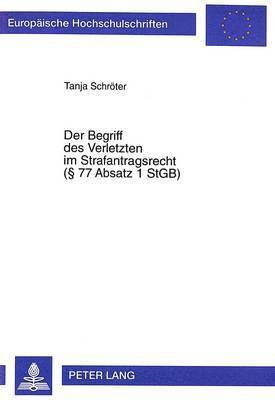 Del 2537Der Begriff Des Verletzten Im Strafantragsrecht (§ 77 Absatz 1 Stgb)Tanja SchröterHäftad515 kr