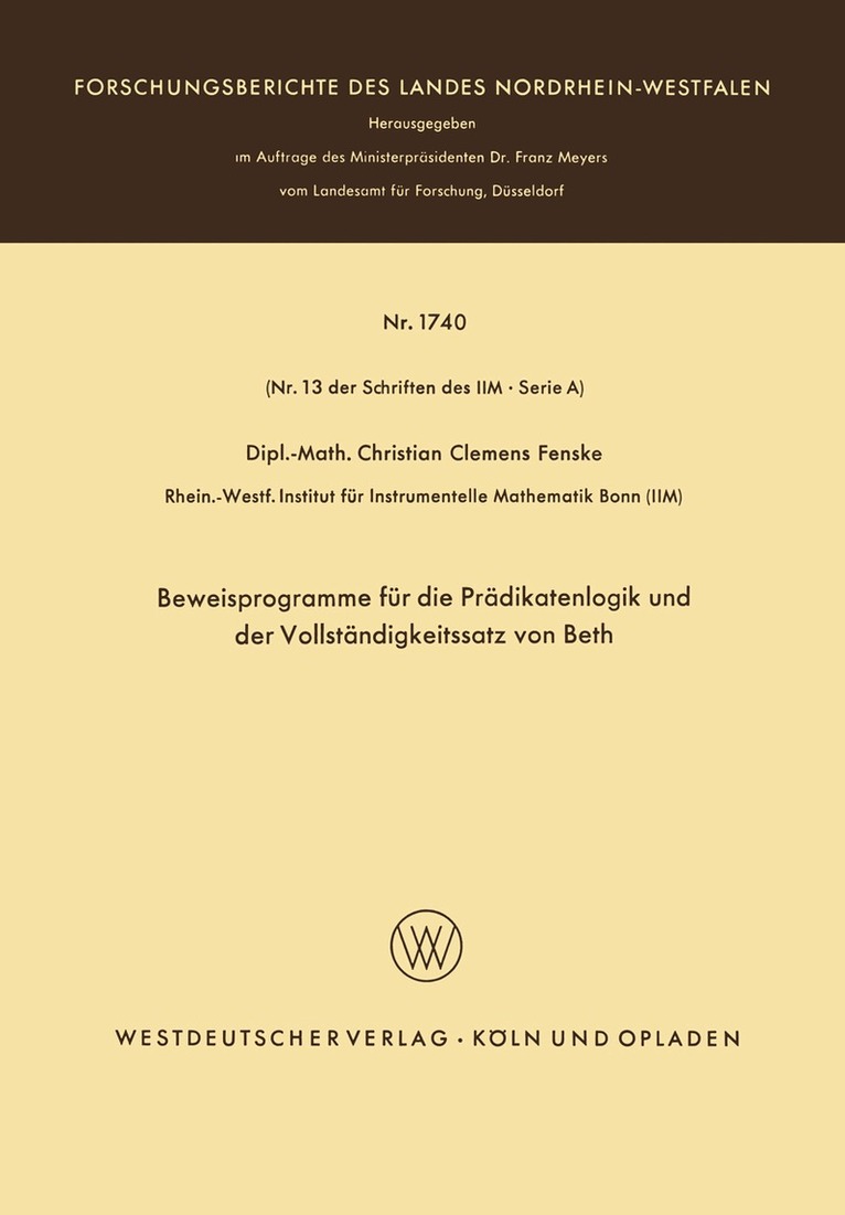 Del i serien Forschungsberichte des Landes Nordrhein-Westfalen