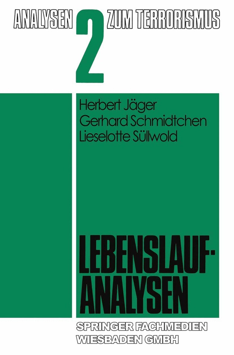 - Fallstudien.- Die Entstehungsbedingungen für die „scene“.- Das Phänomen der Eskalation; Stufen der Eskalation in der Studentenbewegung.- Kommune-Bewegung, Hintergrund und Folgeerscheinungen; Bewegungen zum „Aktionismus“.- 1970: Zwischen „Abschlaffen“ und „revolutionärer Ungeduld“; Voraussetzungen für neue Gruppenbildungen.- Ab 1971 — Entstehung der „Bewegung 2. Juni“.- Zusammenfassende Bemerkungen und Schlußfolgerungen.- Zusammenfassende Einleitung: Das contradiktorische Subsystem.- Die praktizierte Negation.- Die Antipsychiatrie (AP).- Erfahrungsauslese und Verhaltenserwartung.- Subjektivierung.- Der entwickelte Terrorismus.- Die Gruppengeschichte der RAF.- Entstehungsbedingungen der Gruppenbildung.- Umwelterfahrungen im Untergrund.- Regression der Gruppenzwecke.- Spannungen im Gruppensystem.- Bedingungen des Zusammenhalts.- Einige Merkwürdigkeiten des Falles.- Vergleichende Gruppenanalysen.- Sozialwissenschaftliche Annahmen über Gruppenstrukturen, angewandt auf terroristische Gruppen.- Ursachen und Bedingungen terroristischen Handelns.- Methodisches Vorgehen.- Einflußpositionen und Cliquenstrukturen terroristischer Gruppen.- Zusammenfassung.- Terrorismus in der Bundesrepublik Deutschland.- Mitgliedschaftsprofile.- Die soziale Infrastruktur terroristischer Bewegungen.- Gruppen und Gruppenleistungen.- Zur gesellschaftlichen Wirkung linker und rechter Terrorgruppen.- Beschreibung von Aussteigern und Ausstieg.- Ausstieg als Prozeß.- Auslösende Bedingungen für den Ausstieg.- Zusammenfassung.