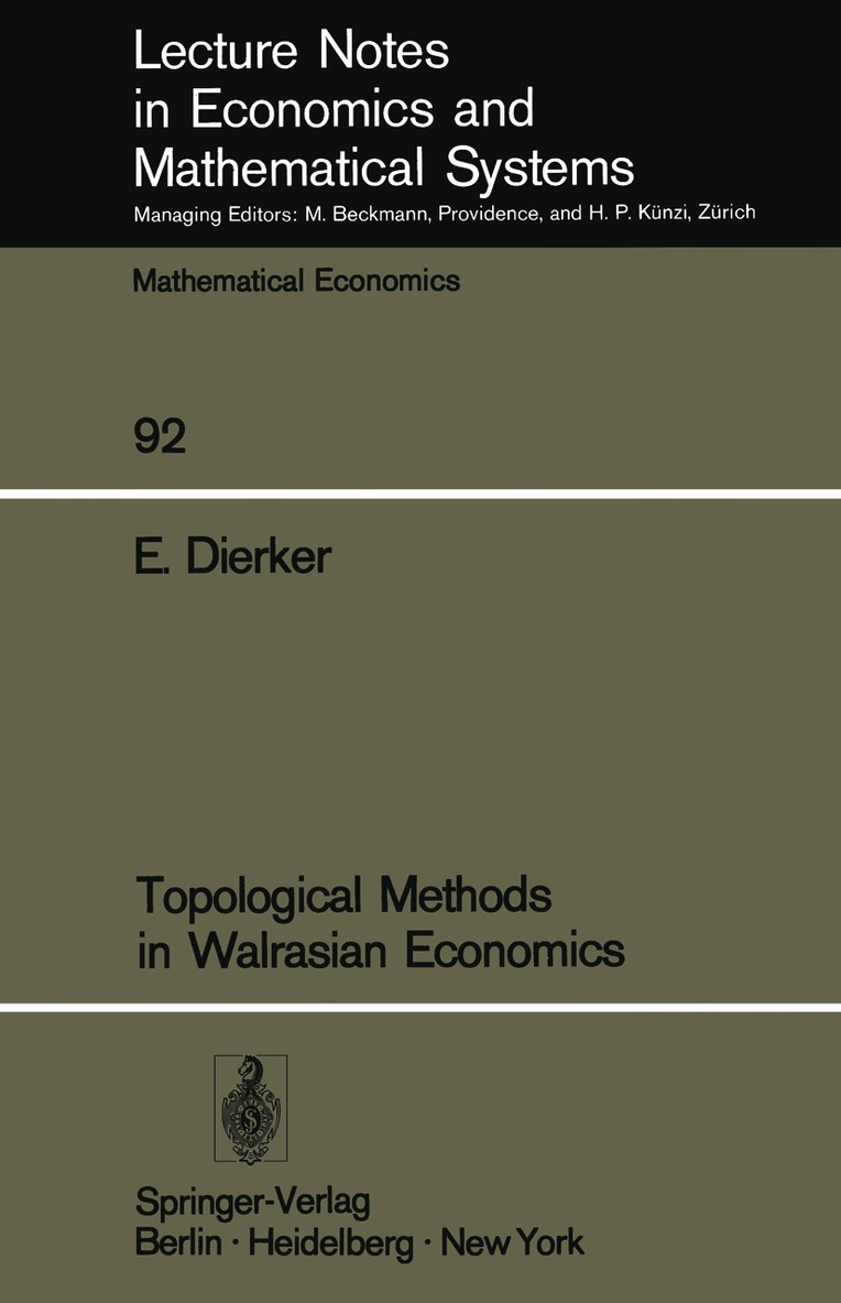 Motivation. That elegant fiction the competitive equilibrium seems still to dominate the frontiers of theoretical microeconomics. We may think of it in a general way as a state of affairs wherein economic agents, responding "rationally" to annoWlced prices, make choices which are consistent and feasible. The prices may also be described as "taken": for one reason or another the agents who respond to them consider them as given. The existence of such a state, its optimality, its robustness against free bargaining among agents when there are many of them, its Wliqueness, its stability when price displacements evoke specified adjustments--all these issues have been studied, and continue to be studied in a variety of settings. Slowly the equilibrium investigated begins to incorporate public goods, externalities of certain kinds, differences in agents' information, and infinitely many time periods. The appeal of such results need not be belabored: the equilibrium studied may sustain an optimal resource allocation, and when it does it sus tains it in a manner that appears to be informationally efficient and to accord well with individual incentives. Therefore it is important to extend the circumstances under which an equilibrium exists, under which it sustains opti mality, and under which it survives displacements as well as free bargaining among agents.