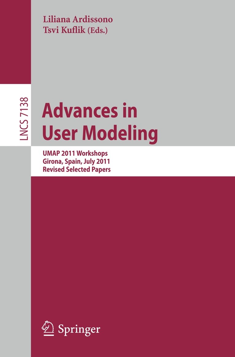 - Invited Talks.- User Modeling Meets Usability Goals.- Hey, That’s Personal!.- Inhabited Models: Supporting Coherent Behavior in Online Systems.- Papers.- Integrating Open User Modeling and Learning Content Management for the Semantic Web.- Modeling Suppositions in Users’ Arguments.- Generative Programming Driven by User Models.- Data-Driven Refinement of a Probabilistic Model of User Affect.- Recognizing Emotion from Postures: Cross-Cultural Differences in User Modeling.- Recognizing, Modeling, and Responding to Users’ Affective States.- Using Learner Focus of Attention to Detect Learner Motivation Factors.- Player Modeling Impact on Player’s Entertainment in Computer Games.- Using Learning Curves to Mine Student Models.- Exploiting Probabilistic Latent Information for the Construction of Community Web Directories.- ExpertiseNet: Relational and Evolutionary Expert Modeling.- Task-Oriented Web User Modeling for Recommendation.- Ontologically-Enriched Unified User Modeling for Cross-System Personalization.- Using Student and Group Models to Support Teachers in Web-Based Distance Education.- Using Similarity to Infer Meta-cognitive Behaviors During Analogical Problem Solving.- COPPER: Modeling User Linguistic Production Competence in an Adaptive Collaborative Environment.- User Cognitive Style and Interface Design for Personal, Adaptive Learning. What to Model?.- Tailored Responses for Decision Support.- Decision Theoretic Dialogue Planning for Initiative Problems.- A Semi-automated Wizard of Oz Interface for Modeling Tutorial Strategies.- Generating Artificial Corpora for Plan Recognition.- Reasoning About Interaction in a Multi-user System.- A Comparison of HMMs and Dynamic Bayesian Networks for Recognizing Office Activities.- Modeling Agents That ExhibitVariable Performance in a Collaborative Setting.- Detecting When Students Game the System, Across Tutor Subjects and Classroom Cohorts.- A Bayesian Approach to Modelling Users’ Information Display Preferences.- Modeling of the Residual Capability for People with Severe Motor Disabilities: Analysis of Hand Posture.- Non-intrusive User Modeling for a Multimedia Museum Visitors Guide System.- Modelling the Behaviour of Elderly People as a Means of Monitoring Well Being.- Bayesphone: Precomputation of Context-Sensitive Policies for Inquiry and Action in Mobile Devices.- Just Do What I Tell You: The Limited Impact of Instructions on Multimodal Integration Patterns.- Motion-Based Adaptation of Information Services for Mobile Users.- Interaction-Based Adaptation for Small Screen Devices.- Adapting Home Behavior to Its Inhabitants.- Design and Evaluation of a Music Retrieval Scheme That Adapts to the User’s Impressions.- The Pursuit of Satisfaction: Affective State in Group Recommender Systems.- An Economic Model of User Rating in an Online Recommender System.- Incorporating Confidence in a Naive Bayesian Classifier.- Modeling User’s Opinion Relevance to Recommending Research Papers.- User- and Community-Adaptive Rewards Mechanism for Sustainable Online Community.- Off-line Evaluation of Recommendation Functions.- Evaluating the Intrusion Cost of Recommending in Recommender Systems.- Introducing Prerequisite Relations in a Multi-layered Bayesian Student Model.- Exploring Eye Tracking to Increase Bandwidth in User Modeling.- Modeling Students’ Metacognitive Errors in Two Intelligent Tutoring Systems.- Modeling Individual and Collaborative Problem Solving in Medical Problem-Based Learning.- User Modeling in a Distributed E-Learning Architecture.- Computer AdaptiveTesting: Comparison of a Probabilistic Network Approach with Item Response Theory.- A Framework for Browsing, Manipulating and Maintaining Interoperable Learner Profiles.- Towards Efficient Item Calibration in Adaptive Testing.- Synergy of Performance-Based Model and Cognitive Trait Model in DP-ITS.- Up and Down the Number-Line: Modelling Collaboration in Contrasting School and Home Environments.- Temporal Blurring: A Privacy Model for OMS Users.- A Framework of Context-Sensitive Visualization for User-Centered Interactive Systems.- Gumo – The General User Model Ontology.- Balancing Awareness and Interruption: Investigation of Notification Deferral Policies.- A Decomposition Model for the Layered Evaluation of Interactive Adaptive Systems.- User Control over User Adaptation: A Case Study.- Towards User Modeling Meta-ontology.- Evaluation of a System for Personalized Summarization of Web Contents.- Social Navigation Support Through Annotation-Based Group Modeling.- Discovering Stages in Web Navigation.- The Impact of Link Suggestions on User Navigation and User Perception.- Doctoral Consortium Papers.- Modeling Emotions from Non-verbal Behaviour in an Affective Tutoring System.- Ubiquitous User Modeling in Recommender Systems.- User Modelling to Support User Customization.- ETAPP: A Collaboration Framework That Copes with Uncertainty Regarding Team Members.- Towards Explicit Physical Object Referencing.- Adaptive User Interfaces for In-vehicle Devices.- Agent-Based Ubiquitous User Modeling.- Using Qualitative Modelling Approach to Model Motivational Characteristics of Learners.- Improving Explicit Profile Acquisition by Means of Adaptive Natural Language Dialog.- Modelling User Ability in Computer Games.- Constraint-Sensitive Privacy Management for PersonalizedWeb-Based Systems.- Modularized User Modeling in Conversational Recommender Systems.