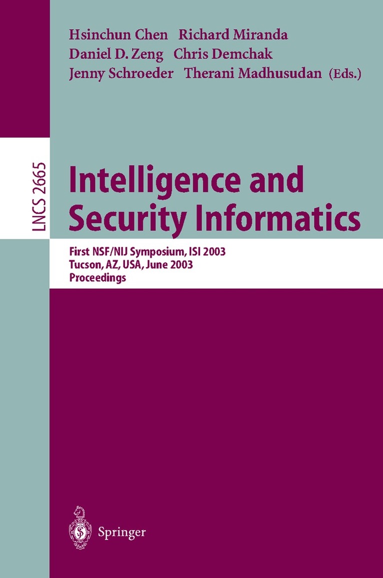 In the past few years, intelligence and security informatics (ISI) research, which is concerned with the study of the development and use of advanced information te- nologies and systems for national and international security-related applications, has experienced tremendous growth and attracted substantial interest from academic - searchers in related fields as well as practitioners from both government agencies and industry. The ISI community is maturing, and a core set of research methodologies and technical approaches has emerged and is becoming the underpinning of ISI research. The first two meetings (ISI 2003 and ISI 2004) in the ISI symposium and conf- ence series were held in Tucson, Arizona. With sponsorship by the IEEE Intelligent Transportation Systems Society, ISI 2005 was held in Atlanta, Georgia. Building on the momentum of these ISI meetings, we held ISI 2006 in San Diego, California, in May 2006. In addition to the established and emerging ISI technical research topics, ISI 2006 included a track on terrorism informatics, which is a new stream of terrorism research leveraging the latest advances in social science methodologies, and infor- tion technologies and tools.