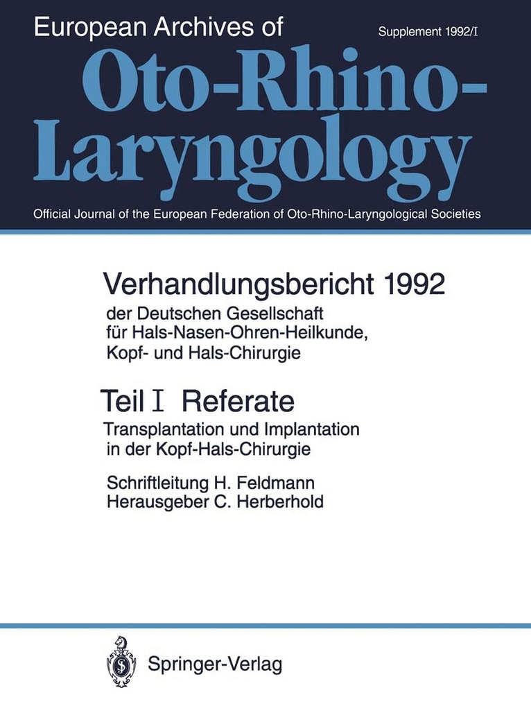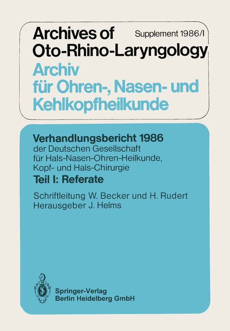 Del i serien Verhandlungsbericht der Deutschen Gesellschaft für Hals-Nasen-Ohren-Heilkunde, Kopf- und Hals-Chirurgie