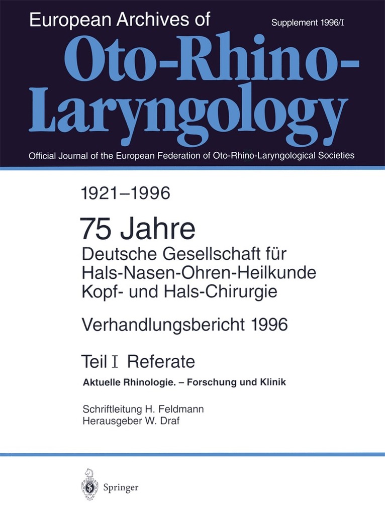 Del i serien Verhandlungsbericht der Deutschen Gesellschaft für Hals-Nasen-Ohren-Heilkunde, Kopf- und Hals-Chirurgie