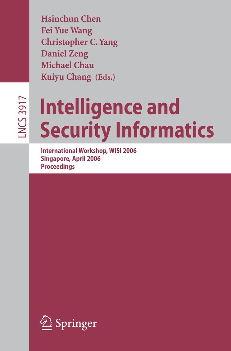 Intelligence and security informatics (ISI) is concerned with the study of the development and use of advanced information technologies and systems for national, international, and societal security-related applications. The annual IEEE International Conference series on ISI was started in 2003 and the first four meetings were held in the United States. In 2006, the Workshop on ISI (http://isi. se. cuhk. edu. hk/2006/) was held in Singapore in conjunction with the Pacific Asia Conference on Knowledge Discovery and Data Mining, with over 100 contributors and participants from all over the world. These past ISI conferences have brought together academic researchers, law enforcement and intelligence experts, information technology consultants, and practitioners to discuss their research and practice related to various ISI topics including ISI data management, data and text mining for ISI applications, terrorism informatics, deception and intent detection, terrorist and criminal social network analysis, public health and bio-security, crime analysis, cyber-infrastructure protection, transportation infrastructure security, policy studies and evaluation, and information assurance, among others. We continued this stream of ISI conferences by organizing the 2007 Pacific Asia Workshop on ISI (PAISI 2007) to especially provide a stimulating forum for ISI researchers in Pacific Asia and other regions of the world to exchange ideas and report research progress. PAISI 2007 was hosted by the Chinese Academy of Sciences, the University of Arizona, and the Chinese University of Hong Kong.