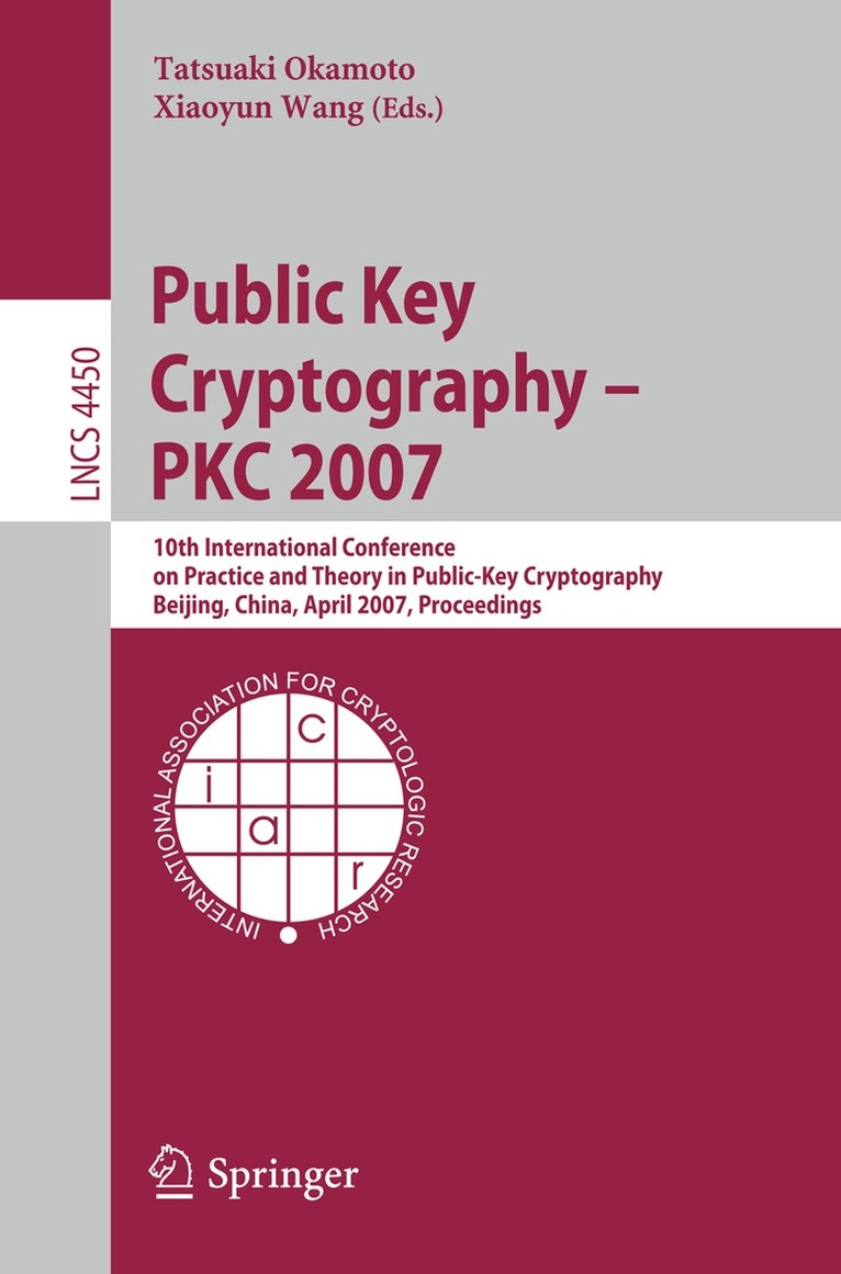 Pairing-based cryptography is at the very leading edge of the current wave in computer cryptography. That makes this book all the more relevant, being as it is the refereed proceedings of the First International Conference on Pairing-Based Cryptography, Pairing 2007, held in Tokyo, Japan in 2007. The 18 revised full papers presented together were carefully reviewed and selected from 86 submissions. The papers are organized in topical sections including those on applications, and certificateless public key encryption.