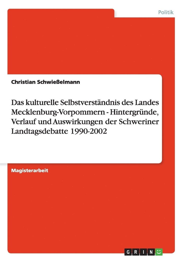 kulturelle Selbstverständnis des Landes Mecklenburg-Vorpommern - Hintergründe, Verlauf und Auswirkungen der Schweriner Landtagsdebatte 1990-2002Christian SchwießelmannHäftad875 kr
