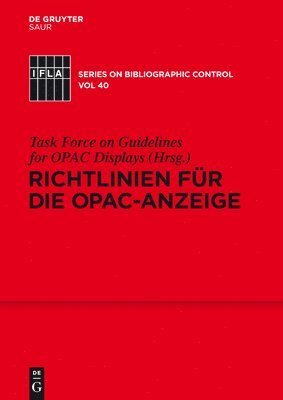 Del 40Richtlinien für die OPAC-AnzeigeTask Force on Guidelines for Opac Displays (Arbeitsgruppe Richtlinien Für Opac-Anzeigen)Inbunden1 099 kr
