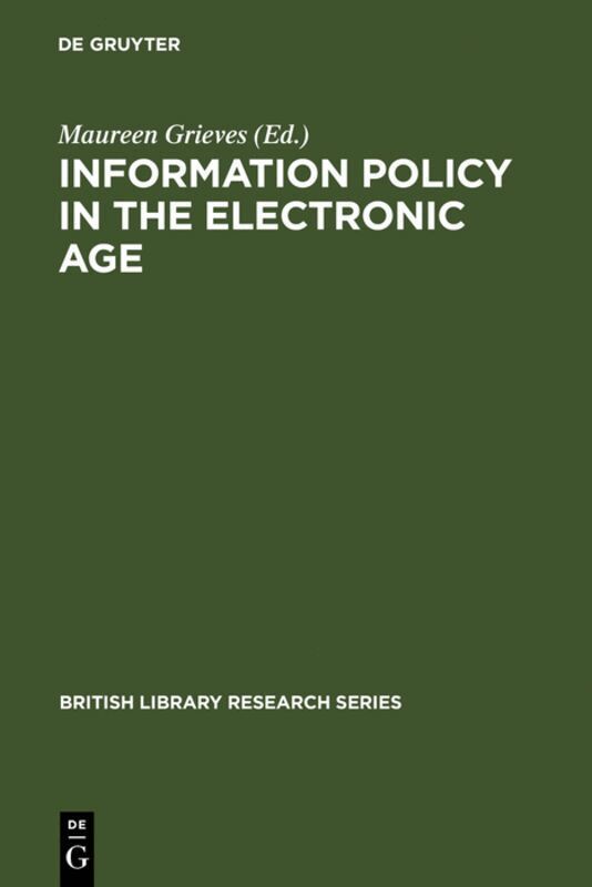 Frontmatter -- General Overview -- General Overview -- Information Policy Concepts -- Overview, Paul Turner -- Understanding Information Policy: Concepts, Frameworks and Research Tools -- Models and Frameworks for Information Policy Research -- Information for Policy-Making -- Information Policy or Knowledge Policy? -- National and international perspectives -- Overview -- Neo-Liberal or Dirigiste? Policies for an Information Society -- European Information Policy: the Role of Institutional Factors -- Implementing Information Policies: Some Data Protection Experience -- Legal and Regulatory Frameworks for Information Policy -- Real Policy or ‘Virtual Policy’? A Case Study of Tradeable Information Policy -- Organizational Perspectives -- Overview -- Library and Information Policy Development in the NHS -- Information Systems Strategy Formulation in Higher Education -- Changing the Corporate Culture: Information Policies for Business Excellence -- Evaluating Information Policy in a Multinational Organization -- The Limitations of ‘Free’ Access in Academia: Making Commercial Databases Available -- Conclusions -- Summary and Reflections on the Workshop -- Directions for Further Research in Information Policy, David Bawden -- Workshop Documentation and Programme -- Understanding information Policy -- Bibliography and References -- Index
