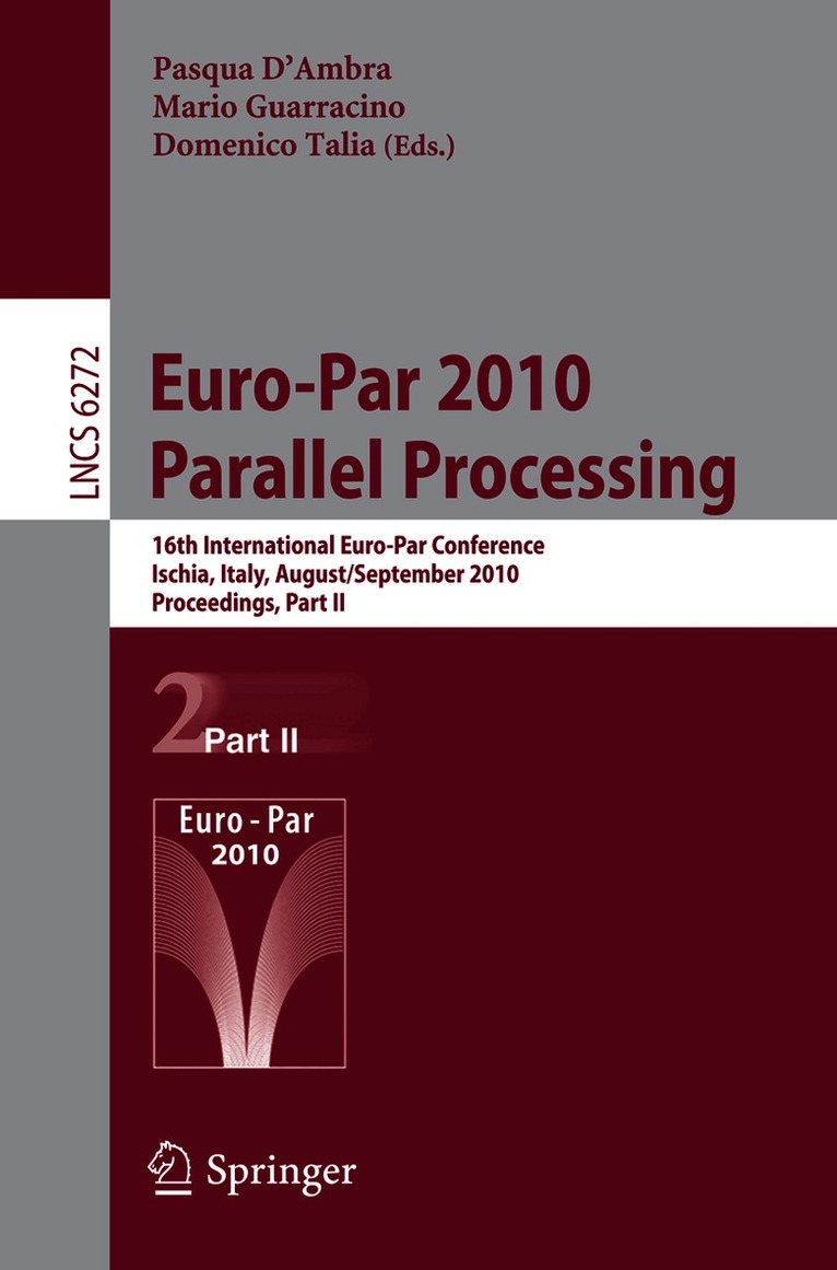 Euro-Par is an annual series of international conferences dedicated to the p- motion and advancementof allaspects of parallelcomputing. The major themes can be divided into four broad categories: theory, high-performance, cluster and grid,distributedandmobilecomputing.Thesecategoriescomprise14topicsthat focus on particular issues. The objective of Euro-Paris to provide a forum within which to promote the development of parallel computing both as an industrial technique and an a- demic discipline, extending the frontier of both the state of the art and the state of practice. The main audience for and participants in Euro-Par are researchers inacademicdepartments,governmentlaboratories,andindustrialorganizations. Euro-Par2010 was the 16th conference in the Euro-Parseries, and was or- nizedbythe Institute forHigh-PerformanceComputingandNetworking(ICAR) of the Italian National Research Council (CNR), in Ischia, Italy. Previous Euro- ParconferencestookplaceinStockholm,Lyon,Passau,Southampton,Toulouse, Munich, Manchester, Padderborn, Klagenfurt, Pisa, Lisbon, Dresden, Rennes, Las Palmas, and Delft. Next year the conference will take place in Bordeaux, France.More information on the Euro-Par conference series and organization is available on the wesite http://www.europar.org. As mentioned before, the conference was organized in 14 topics. The paper review process for each topic was managed and supervised by a committee of at least four persons: a Global Chair, a Local Chair, and two members. Some speci?c topics with a high number of submissions were managed by a larger committeewithmoremembers.The?naldecisionsontheacceptanceorrejection ofthesubmitted papersweremadein ameeting ofthe ConferenceCo-chairsand Local Chairs of the topics.