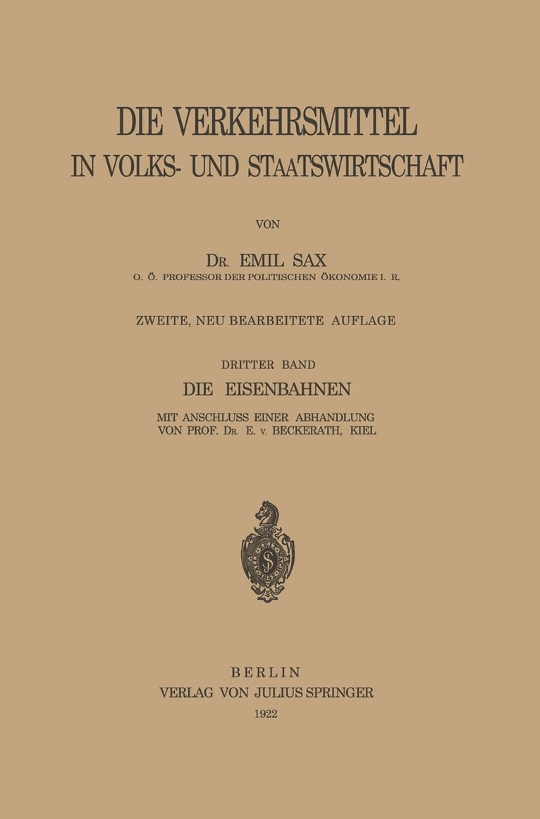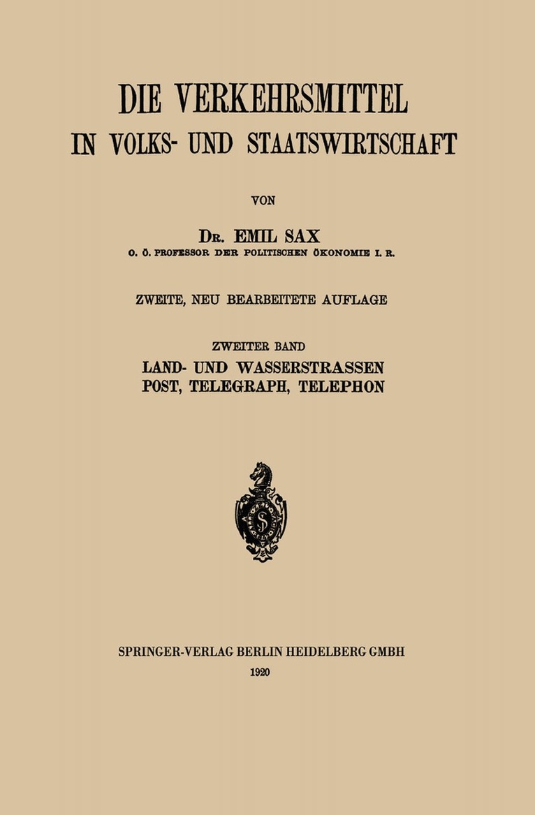 Del i serien Die Verkehrsmittel in Volks- und Staatswirtschaft