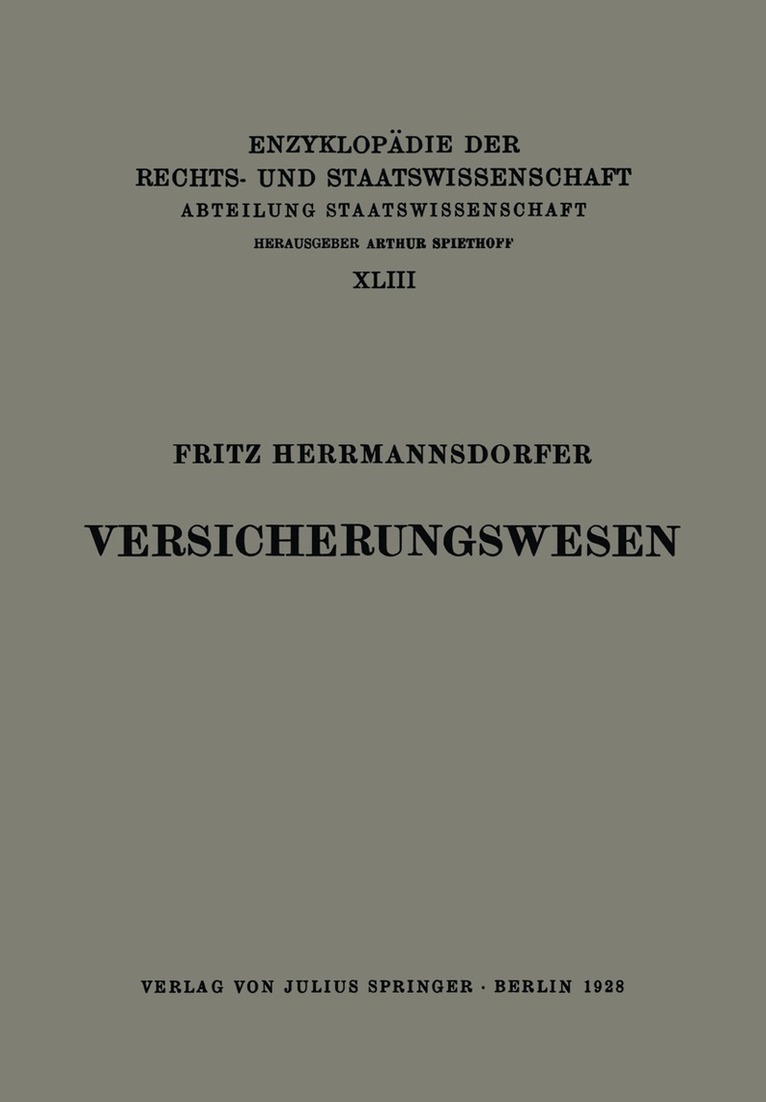 Del i serien Enzyklopädie der Rechts- und Staatswissenschaft