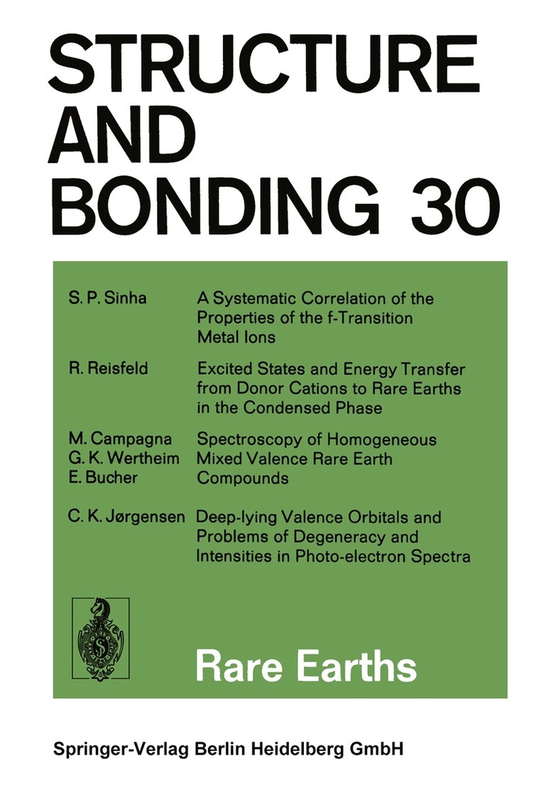 The lanthanide ions as structural probes in biological and model systems.- Partly filled shells constituting anti-bonding orbitals with higher ionization energy than their bonding counterparts.- The intensities of lanthanide f ? f transitions.- Radiative and non-radiative transitions of rare-earth ions in glasses.