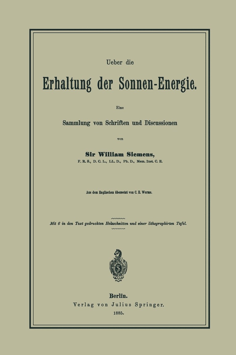 Ueber die Erhaltung der Sonnen-Energie. Eine Sammlung von Schriften und DiscussionenWilliam SiemensHäftad549 kr