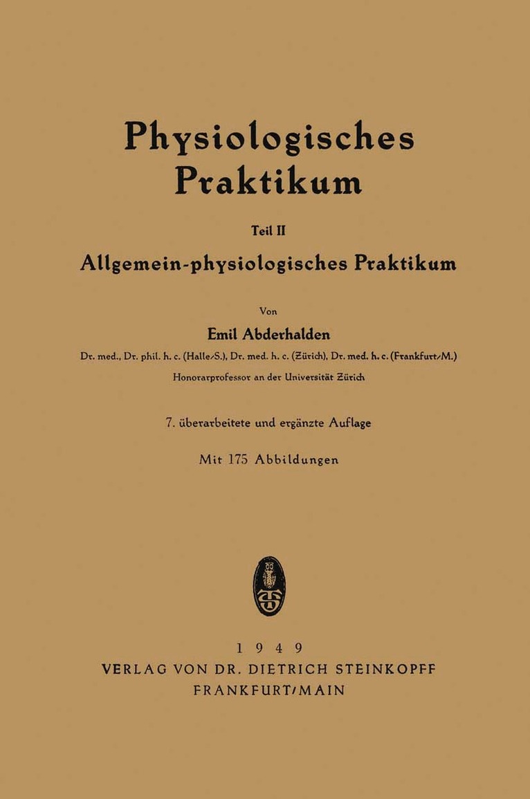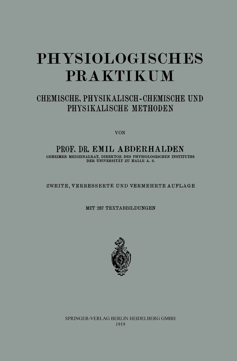 Dieser Buchtitel ist Teil des Digitalisierungsprojekts Springer Book Archives mit Publikationen, die seit den Anfängen des Verlags von 1842 erschienen sind. Der Verlag stellt mit diesem Archiv Quellen für die historische wie auch die disziplingeschichtliche Forschung zur Verfügung, die jeweils im historischen Kontext betrachtet werden müssen. Dieser Titel erschien in der Zeit vor 1945 und wird daher in seiner zeittypischen politisch-ideologischen Ausrichtung vom Verlag nicht beworben.