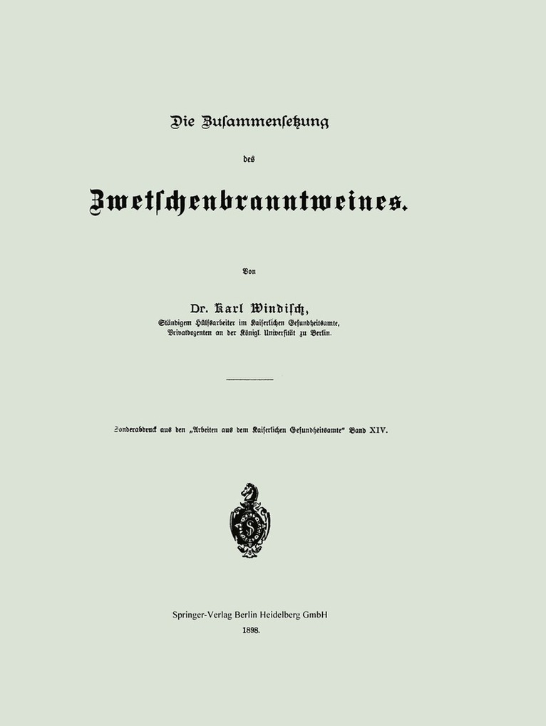 Del i serien Arbeiten aus dem Kaiserlichen Gesundheitsamte